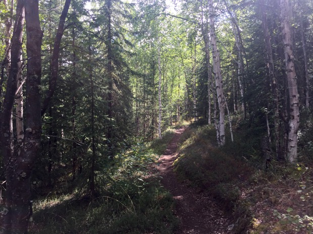 現在、1ヶ月ほどの日程でアラスカを訪れているアウトドアコーディネーターの“チュンチュン”こと小雀陣二さん。仕事の合間をぬってプライベートで出かけたあるトレイルのレポートを送ってくださいました。歩いたのはわずか数日前という、まさに“取って出し”! こういった身近なトレイルがフェアバンクス周辺にはたくさんあるようです。