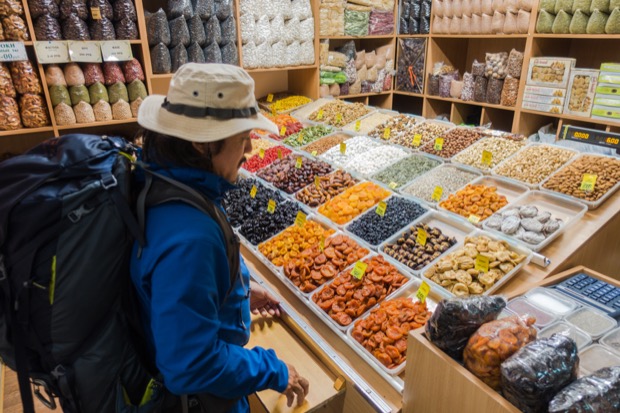 市場で行動食の買い出しをする。香辛料やドライフルーツはウズベキスタンやトルクメニスタンなど、中央アジアの商人が商っていた