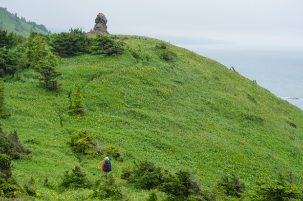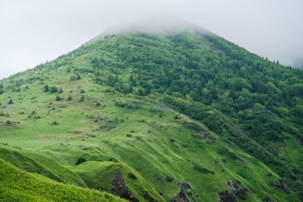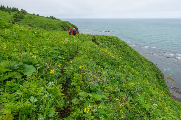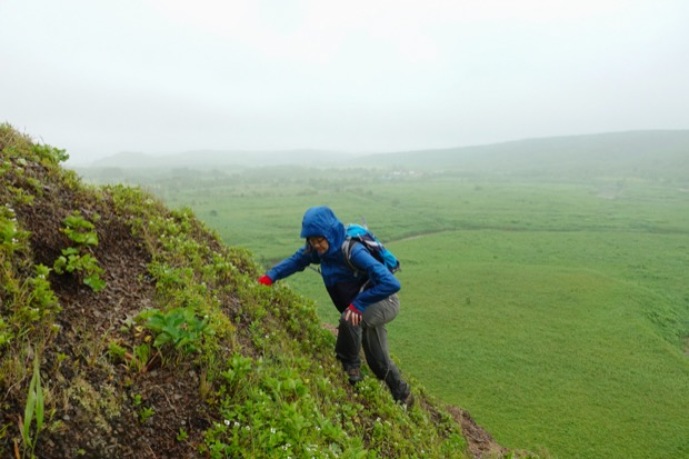 セルゲイさんはそんなことはおかまいなしにガシガシと斜面を登っていく。ミリアに急かされ、僕は慌ててその後を追う。この時はまだ知らなかったが、サハリンには「急がばまわれ」という概念は微塵もない。「急がばまっすぐ」なのである。ロシア人が笑わないのと同じぐらい、それは明白な事実だった。