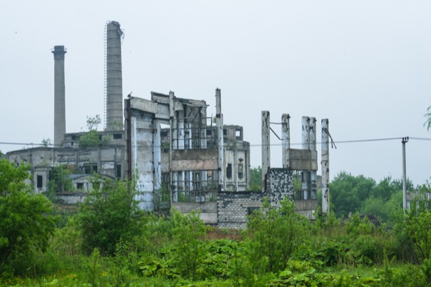 ユジノサハリンスク(豊原)からスタロドゥブスコエ(栄浜)に向かう途中のドリンスク(落合)に巨大な廃墟があった。日本時代に建てられた王子製紙の工場だ。宮沢賢治は1923年にここを訪れ、農学校の教え子の就職を頼んだという