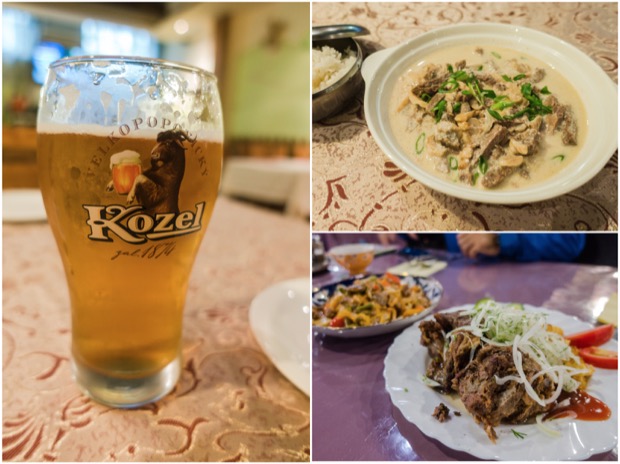 せっかくなのでロシア郷土料理を食べにいった。右上がボルシチだ。でもサハリンでは日本料理や韓国料理のほうが人気が高いそうで、いわゆるロシア料理のレストランは数少ない