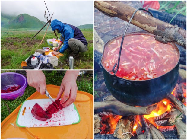 この日はティファヤ湾の砂浜にテントを張った。流木を集めて焚き火を熾し、鉄鍋で料理をした。ミリアがビーツと根菜とベーコンのスープを作ってくれた。このあたりの郷土料理で「ボウシュ」というらしい。