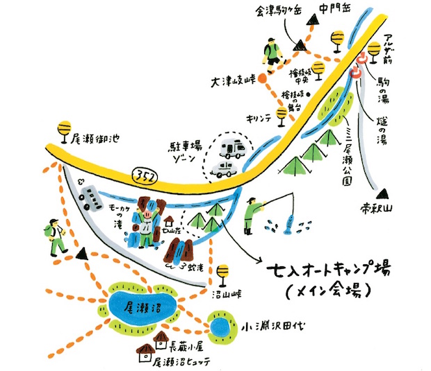 メイン会場となるのは、村内でも尾瀬にもっとも近いキャンプ場・七入オートキャンプ場。来場者はここでキャンプインをすることができ、2日間みっちりイベントを満喫できるのだ。