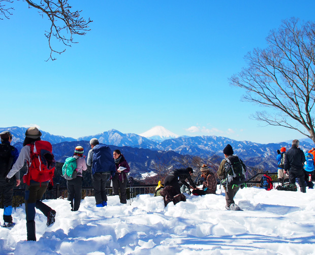 早くも2018年1月の中旬。すっかり山は冬モード。低山ハイキングの案内人をやっていてよく聞く言葉に「冬山は怖いから行かない!」というのがある。春夏秋は登山をするが、冬の間は低山にも行かず、そのままフェードアウトするケースも多い。実際に冬の低山は若いハイカーが減り、暖かい間は高い山に登っていたベテランハイカーが、冬の間は低山に戻ってくる印象だ。気軽に行ける身近な低山でも、冬ならではの楽しみ方が増えるのにもったいない! と思ってしまう。トップ写真は雪が降ったあとの高尾山山頂だ。山の雰囲気がガラッと変わるだけではなく、観光客がいなくなり、雪と景色を求めるハイカーが増える。殆どのハイカーはいつもの装備に軽アイゼン(最近はチェーン式が多い)とトレッキングポールとゲイターを足したくらいの装備だ。