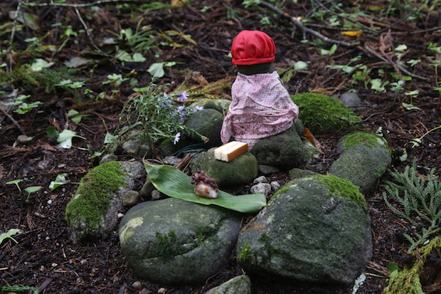 小和田集落の裏手に佇む石仏が、旅を見守る。