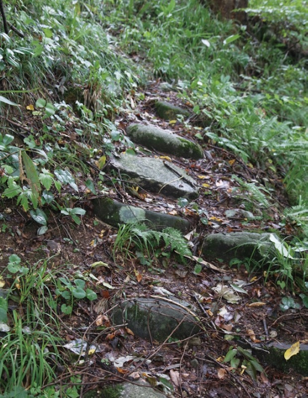 小和田集落から延びる細い山道の石段が、女川道の証のようで、古道に分け入る情熱をかき立ててくれた。