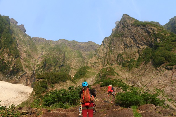 そんな一ノ倉沢は、クライミングを始めたばかりの人にとって憧れの地。アルパインクライミング黎明期より続く、歴史ある聖地として人気がある。とくに一ノ倉沢烏帽子岩南稜(以下、南稜と呼ぶ)はアルパインクライミングの登竜門とされ、取り付きまでの歩行技術、天気が急変しやすい谷川岳での天候判断、そしてルートファインディングまで含めた登攀技術、が試される好ルートだ。