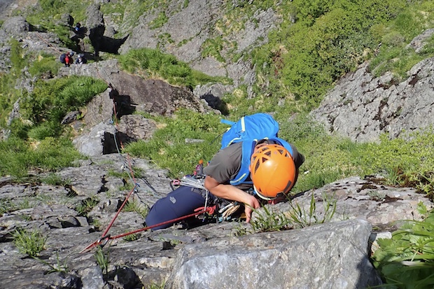 2ピッチ目。谷川岳独特のスラブ地形がすばらしい。