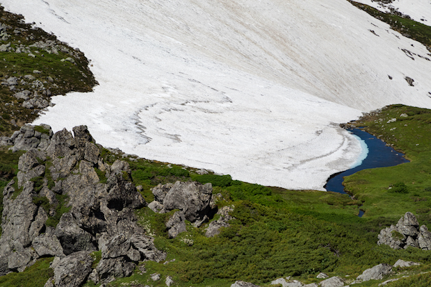 豊富な雪が雄大な雪渓を生みだし、沢を、高層湿原を形成する。そうして、氷河期を生き延びた動植物たちの安息地となっている。