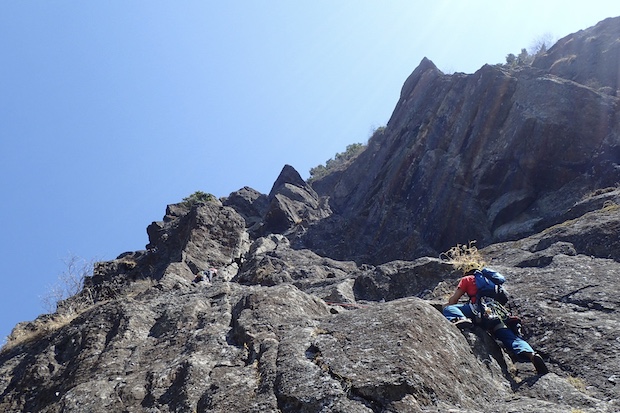 中央カンテ2ピッチ目。Ⅲ級の快適なクライミング。ここで体を慣らしておこう。