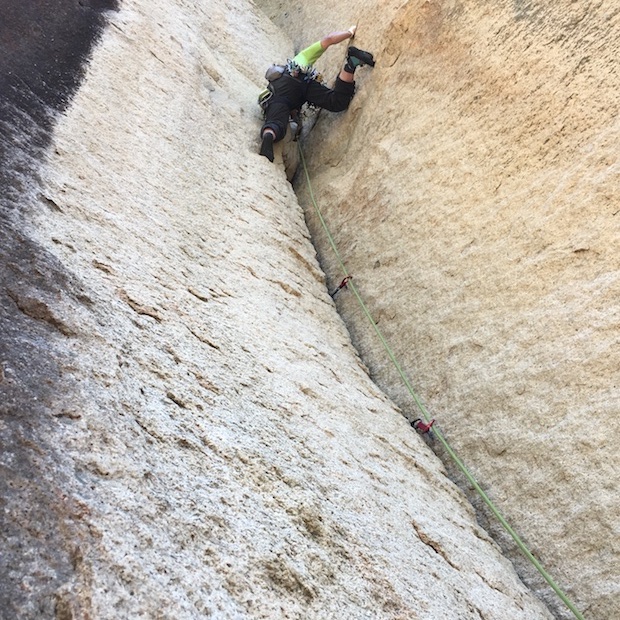 中央カンテ4ピッチ目の左に上がるルート。この時はカム1式にトライカムも持って行っている。