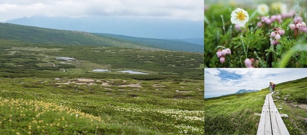 化雲岳から五色岳へと続く、広大な高層湿原。遠近感が掴めないような広がりのただなかにあると、日常がどこか遠くへ消え去ってゆく。花咲き乱れるなかを歩く幸せ。