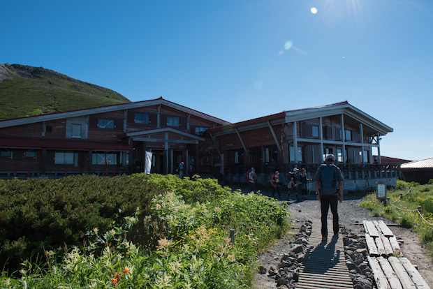 ようやくたどり着いた、白山室堂。ビジターセンターは宿泊棟や軽食を用意したレストランが設置されている。