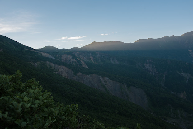 別当出合から観光新道を登って、尾根たる白山禅定道へ。歩みを進めるごとに、闇に塗りつぶされた夜がほころんでゆく。
