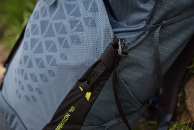 ミニマムな1泊登山の装備を快適に収めるだけでなく、バリエーションルートなど、よりチャレンジングなフィールドでもホールド感を保ち、バランスよくフィットする人気モデル。「昨年の誕生以来、愛用しています。グレゴリーが優れているのは、なんといってもショルダーハーネスのフォルム。スノーボードで怪我していることもあり、首回りの違和感が肩凝りに直結するのですが、グレゴリーの各モデルにはそれがありません。パラゴンはとくにフィット感に優れていて、クライミングハーネスを付けるときなど、ヒップベルトを締めなくても、心地よく背負うことができるほど(笑)。腕まわりの自由度も大きいうえに、荷重分散、バランスに優れているので、テクニカルなバリエーションルートであっても、行動時間が長いときは、登攀系のモデルではなくパラゴンを選ぶことが多いです」