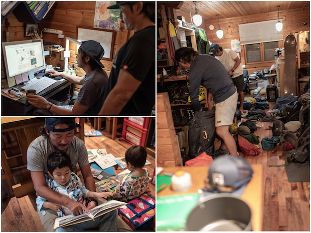 塚原聡が主宰する「北海道バックカントリーガイズ」のベースロッジにて。北海道じゅうが大荒れの天候で、僕らの旅程は根本から覆された。バタバタと旅支度をし、塚ちゃんのふたりの息子を寝かしつける。とーちゃんたちは北の果てまで旅に出ることになったから、オマエら留守をしっかり頼むぞ