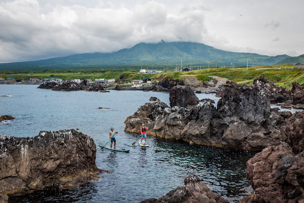 僕らは汗だくで担いできたインフレータブルSUPに空気を入れるとさっそく海に出ることにした。「ヤマセの風」と呼ばれる北東風がオホーツク方面から吹き付けているので、安心して漕げるのは風裏になる島の南西側だけだったが、この状況で海を漕げるなんて奇跡みたいな話だ。