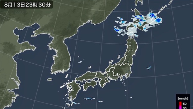 赤井川村にあるツカちゃんの家に着いたのが午後7時。さっそくパソコンを開いて天気概況を調べたが、雨雲レーダーの画像をみて絶句した。道南、道央、道東、道北の全域に巨大な雨雲がグルグルと渦巻き、場所によっては1時間に40mmを越える雨が降っていた。テレビのニュースでは各地の主要道路の通行止め情報が次々とあがり、アナウンサーが「観測史上最悪の」とか「厳重な警戒が必要です」みたいなコメントを読み上げていた。