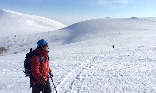 山岳ガイドの塚原聡(ツカちゃん)と初めて旅をしたのは2015年の早春のこと。場所は北海道の雪山だった。バックカントリーを滑る人には知られていることだが、パウダースノーで有名なニセコアンヌプリから日本海沿いの岩内岳の間には、積雪期にだけ出現する“オートルート”と呼ばれる縦走ルートがある。2泊3日あるいは3泊4日をかけて9つの山をスキーやスノーボードで滑りながら旅ができる、バックカントリーマニアにとっては最高の縦走路だ。