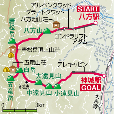 そして、今回めざすことになったルートというのが、なんとこのエリアのちょうどあいだとなる場所。比較的に楽にアプローチできるポイントとは、八方尾根と遠見尾根ことでした。なぜなら、この尾根には、行きも帰りもスキー場に併設されたゴンドラリフトを利用することができるから。冬の白馬に来ている人なら、おなじみの白馬八方尾根スキー場のゴンドラとリフトを使って、標高差1,050mを一気に稼ぎ、登山道入口の八方池山荘へ。そこから、主稜線に位置する唐松岳頂上山荘をめざします。稜線に出たら、五竜岳に向かって細い岩稜をたどり、遠見尾根を下りるこのルートは、北アルプスの景観を満喫できるオイシイところどりの1泊2日の行程です。標高差があるこのエリアでは、山の上から麓にかけて赤や黄色から緑色にグラデーションとなる、とびきりいい紅葉が楽しめるという情報も。高鳴る胸を押さえつつ、一路白馬に向かったのでした。