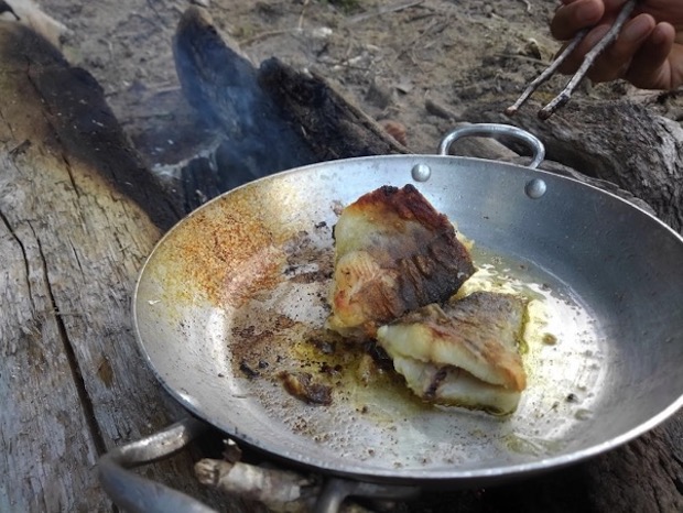 仲間が作ってくれたフライパン系料理がうまい! 小麦粉、高級オリーブオイルで!