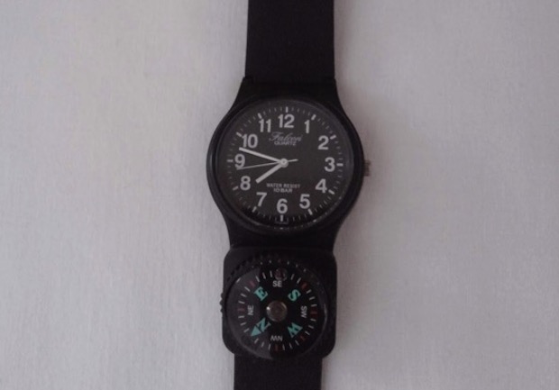 朝からデカイバックパック背負ったオッサンウロウロ。駅ビルで時計屋をみつけ、安物の時計購入。その後ダイソーで時計につけるコンパス購入。