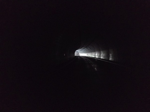 出口の明かりが見えてくるとなんかほっとする、けど途中にある非常地帯? みたいに10m位のへっこみがあるところに来るたび「熊いるなよ!」とビビる。トンネル入るたびに大声出してるからいないと思いつつも、ね。