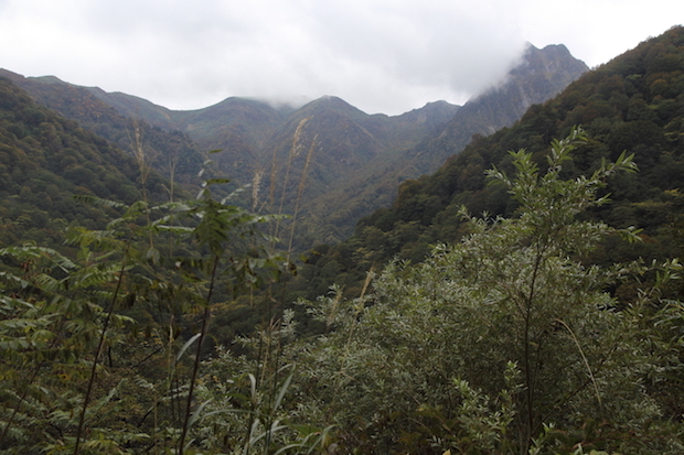 車窓から望む谷川岳が、青空の下で色づいた山巓を際立たせていたのに、トンネルを抜けたとたんに雲が湧き乱れ、六日町ICから駅まで歩くあいだはどうにか持ちこたえた空が、清水行きのバスに乗りこむのを待っていたかのように破綻したのだった。