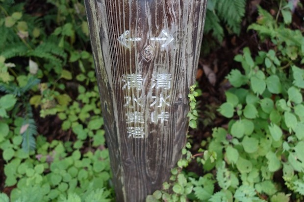 国道の途中にあった、謙信尾根への分岐の木柱。