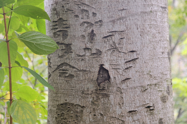 伊坂坂のブナに刻まれた切り付け。