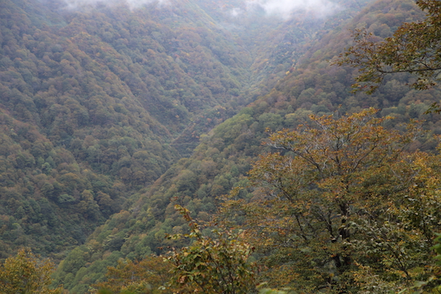 砂防ダム工事の現場があるヒノキグラ沢までは、前日と同様の疲れる車道歩きで、ヒノキグラ沢を越えてようやく山道になる。