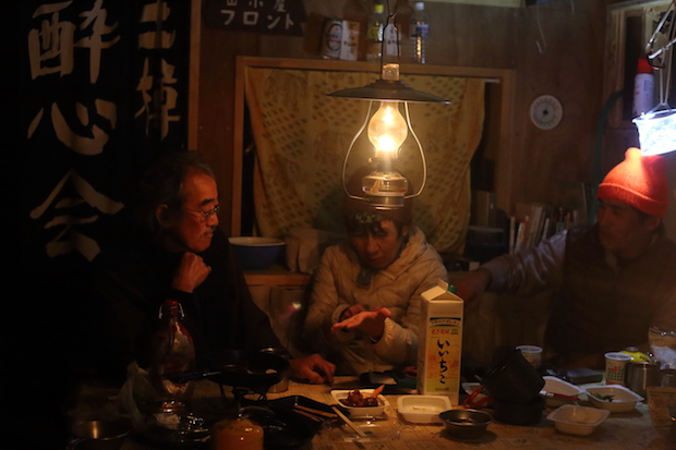 蓬ヒュッテの夜。左が高波菊男さん。