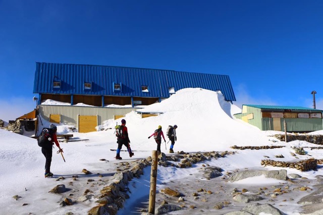 北アルプスの燕岳の稜線上にある山小屋で、雪の北アルプスを一望したいならこの燕山荘がオススメ。冬季は林道が通行止めとなるため、宮城ゲートより中房温泉まで約5時間前後歩き、中房温泉で1泊、そして北アルプス三大急登の合戦尾根を登り小屋をめざします。こちらも小屋からキレイな初日の出が望めます。北アルプスが初日の出に染められたモルゲンロートは格別! 燕山荘熟練スタッフによるガイドツアーをやっているので初心者でも安心して登れます。
