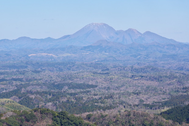 仙ノ山を下り、次に要害山へ。その山頂には山吹城が築かれていましたが、いまではひな壇の曲輪跡がその歴史を語るのみです。そこから遠望すれば活火山の三瓶山(1126m)。山吹城を守った鎧武者たちも同じように眺めたでしょうか。