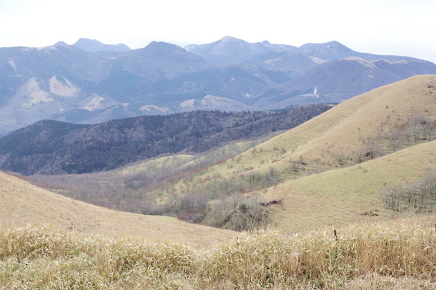 牛の放牧地であったり、野焼きの風習が残っていたりで、九重連山周辺には草原の山肌が多い。一目山から涌蓋山にかけての稜線はその代表格。