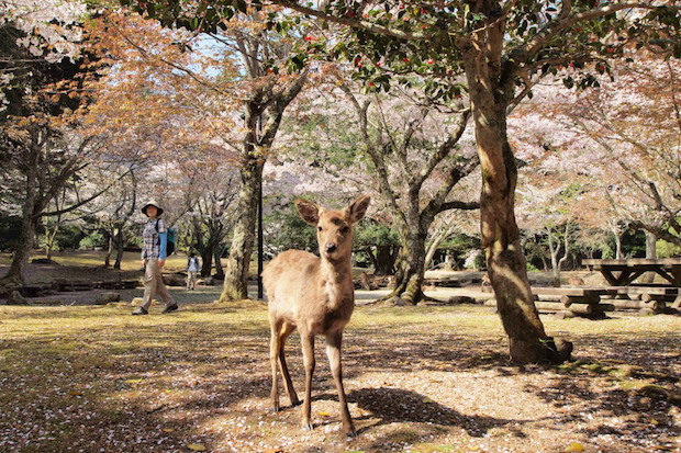 入山は大元公園から。混雑した厳島神社から西へ400mほどですが、私たちふたり以外はシカばかり。宮島のシカといえば餌をねだるイメージですが、大元公園のシカは私たちを無視、または避けていきます。誇り高き野生の姿に導かれ、私たちは巨樹の森に入っていきました。