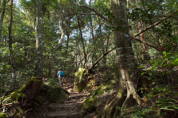 おかげで残ったのは、瀬戸内海沿岸ではここぐらいという古来の森。弥山原始林と呼ばれるその山域は厳島神社とともに世界遺産で、宮島最高峰の弥山を含み、面積は約400ha。いくつかある登山道のうち、今回は世界遺産地区を周遊するルートを選びました。