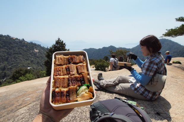 ところでこの登山でのお弁当は、JR宮島口駅前にある「うえの」の「あなごめし弁当」を強く推します。そのおいしさに「もはやウナギは無用!」という人もいるぐらいで、駅弁日本一にもなった伝統の味です。