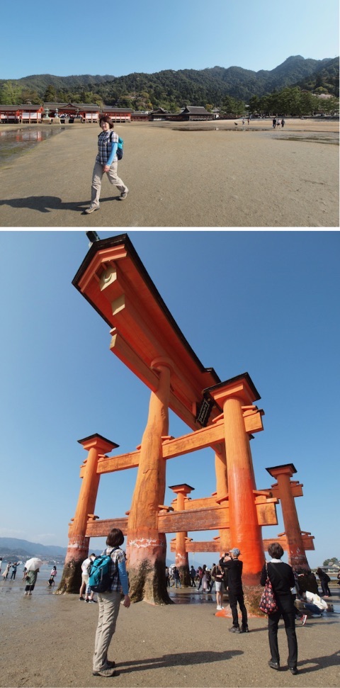 下山したら干潮。大鳥居の足元まで歩いて行けた。