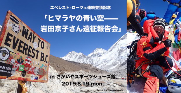 エベレスト-ローツェ連続登頂! 「ヒマラヤの青い空——岩田京子さん遠征報告会」さかいやスポーツで開催!!