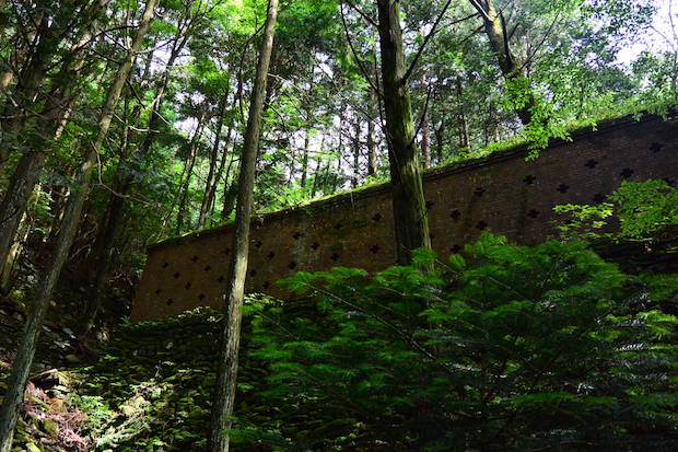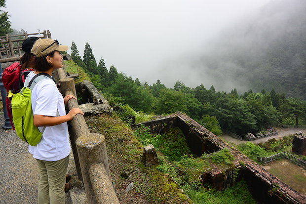 ゆらぎの森から新居浜方面へ車を走らせること、およそ20分ほど、日浦登山口から銅山越にかけての登山道沿いには、別子銅山が栄華を極めたころの遺構が、今もなお森の中に数多く点在しています。精錬所をはじめ、接待館や醸造所、小学校、病院、劇場など、標高1000メートル近い、険しい山を巧みに切り拓き、1万2000人もの人々が暮らす銅山街を形成していました。