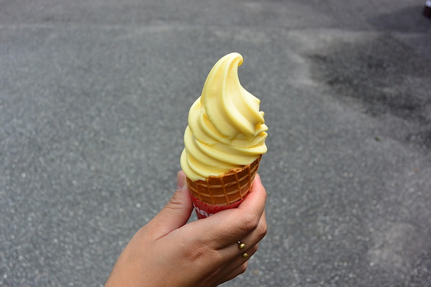 ココだけで1日遊べるって、すごくない? 砂金も採れるし、しいたけ狩りも! でも、愛媛に来たからには、やっぱりコレでしょ! ここのイチ押し、伊予柑ソフト!