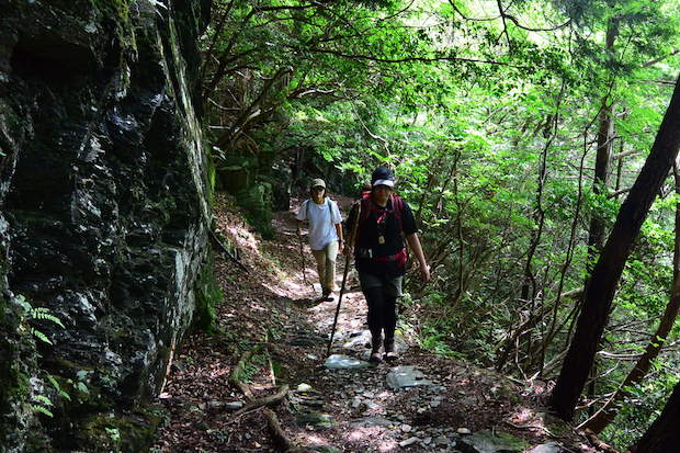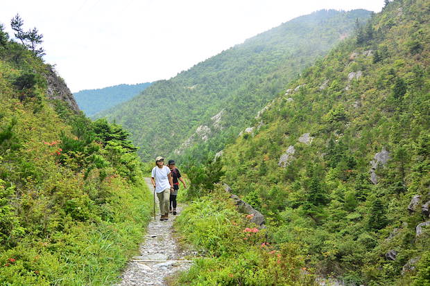 昔の人は、この道を東平まで、掘った銅や生活物資を担いで運んだんだよ。