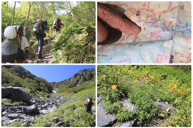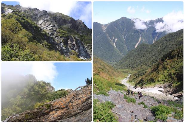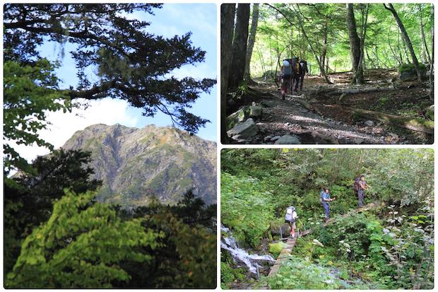 大樺沢沿いを上がっていく。前夜まで雨が降っていたこともあって、滑るところも少なくない。遠回りでもいいから歩を広く取らずにゆっくり。そんな歩き方のコツを教えてもらったり、赤の印がルートであること、汗で体を冷やさないこと、高山病にならないように水を飲むことなど山のルールを教えてもらったり、歩くという単調な行為のなか、少しずつ山のことを知ろうとしている。木や花の名前や特徴を知っていたら、山歩きの楽しみはさらに増すのだろう。