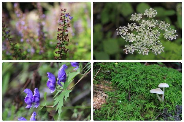 花の最盛期は過ぎているのだろうけど、道沿いでさまざまな花やキノコが出迎えてくれる。