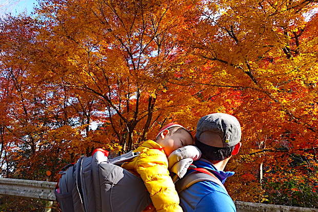 自然のうつくしい景色を前にしても、ぐうぐう……。まだまだ花より団子のお年頃。