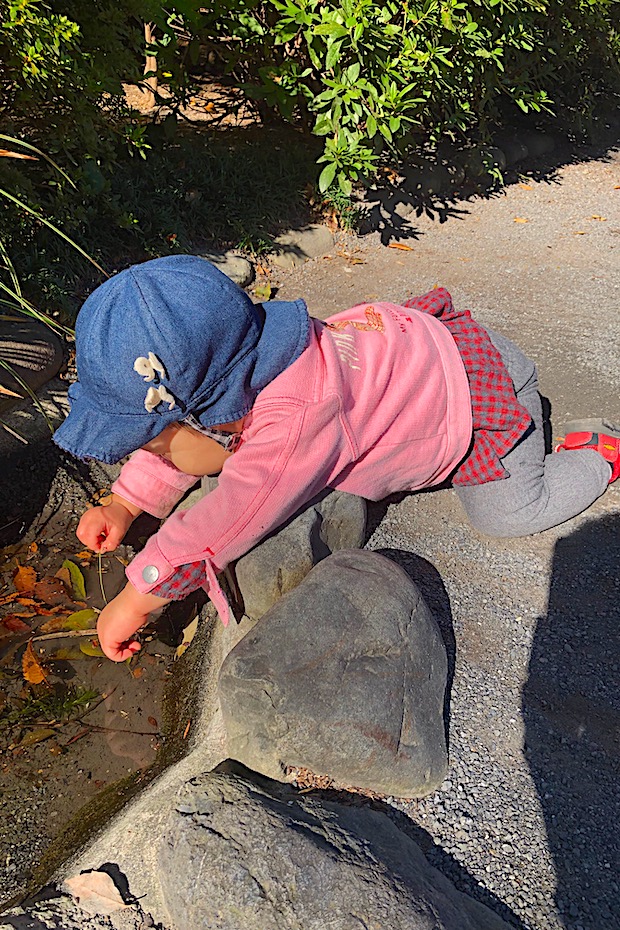 棒を見つけては拾い集め、水たまりの側を通れば食い入るように覗き込んで、テコでも動かない。自然大好きに育ってくれたのはいいが、時々不安になることも。