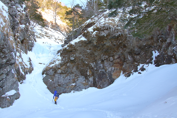 アイスクライミングは、ロープで確保されて登るだけであれば、意外と初心者でもできちゃったりします。ただし、初心者同士だけではロープのセットや道具の使い方がわからなかったりということがあるので、安全面を考えると、やっている人に連れて行ってもらうのが一番ではないかと思います。もし、周りでやっている人がいなければ、岩根山荘で体験会や講習等もやっていますので、そういった機会にやってみるのがオススメです。