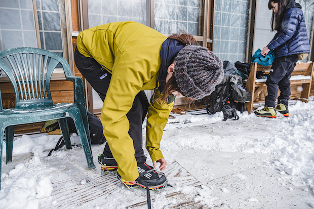 岩根山荘ではアイスクライミングギアであるバイルやアイゼン、ハーネスやヘルメットや冬靴などもレンタルで用意されているので、道具を持っていない仲間と来ても安心してアイスクライミングが楽しめます。