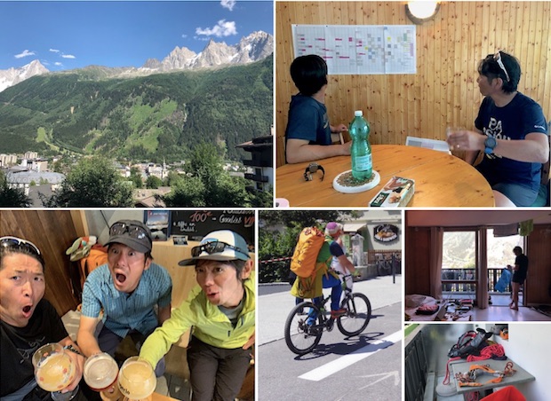 AGガイドチームのシャモニ宿舎に潜入。部屋の窓からはエギューユ・ドュ・ミディの針峰群が一望に。夏の登山シーズン中は、日本からも数多くの登山客がAGのツアーを頼って、ヨーロッパの山々に登りに来る。国際山岳ガイドの近藤さんや山岸さんは、モンブランだけでなく、マッターホルンやアイガーといったヨーロッパの山々に行ったり来たり。その数ヶ月間はガイドたちが集まって、このような共同生活を送っている。シャモニのほかツェルマットやグリンデルワルトなど、登山のベースとなる街々に同様の宿舎を借り受けることもあるという。ガイドチームの仕事は多岐にわたり、空港への送迎から高所順応のためのハイキング、そして本番の登山と忙しい日々を送っている。もちろん、今回のように心労が重なることもあり……これを何度も繰り返すのだから、本当に大変な仕事である。